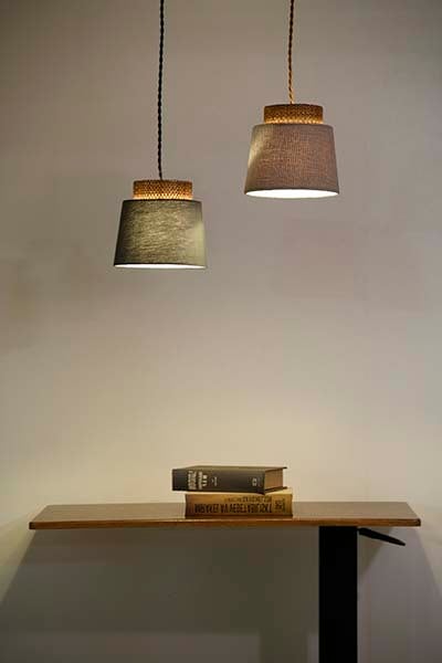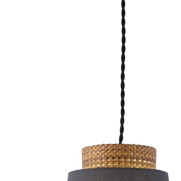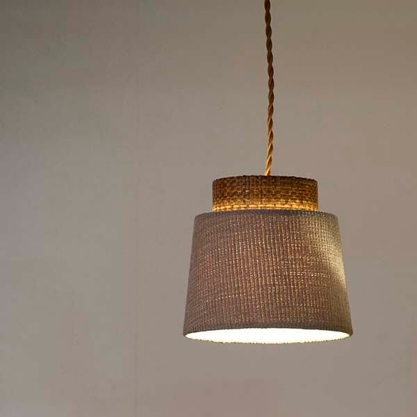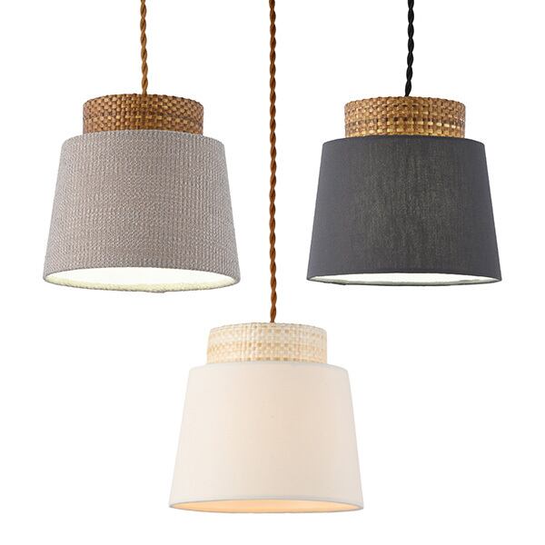 こじんまりした1灯シェードながら温かみあるファブリックと上部はラタン調で構成された印象的なペンダント。工芸品のような雰囲気のシェードがツイストコードで吊下げられた様は穏やかでゆったりとした夜のひと時を演出します。狭小スペースでの単灯使用はもちろん、ライティングレールを使用してダイニングなどでの多灯吊りもおすすめ。(レールへの取り付けには別途アダプタが必要です)