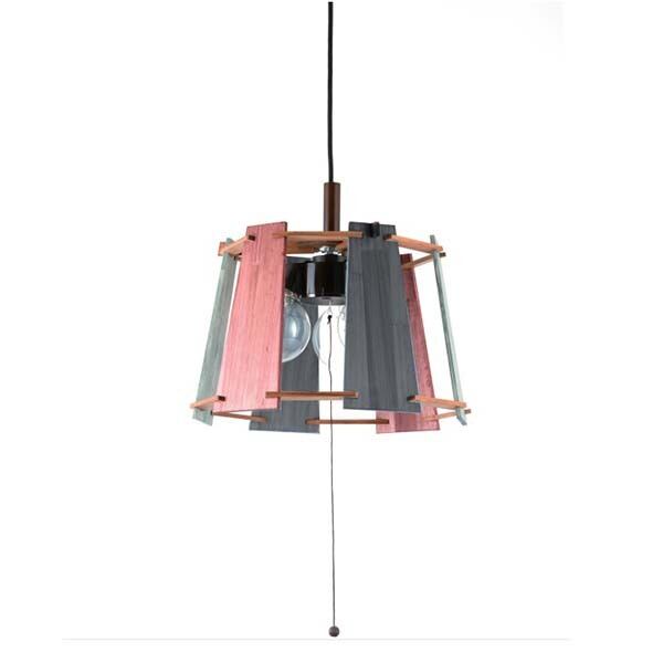 その名はフランス語で「樹木」。3色の異なる着色の6枚の板の組み合わせが古い小屋の様な雰囲気を醸し出し、小屋の中で生活する温かさの様な光が木の間から垣間見れるような作りになっています。また、それによって生まれる影が壁面に濃淡を生みぬくもりを感じる空間に。灯具部分は100Wまで対応のソケットを3灯装備。ペンダントとしてはかなり明るい仕様になっています。プルスイッチを備え、常夜灯も装備。3灯→1灯→ナツメ⇒消灯と切り替え可能。