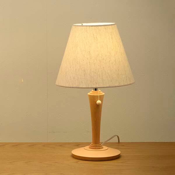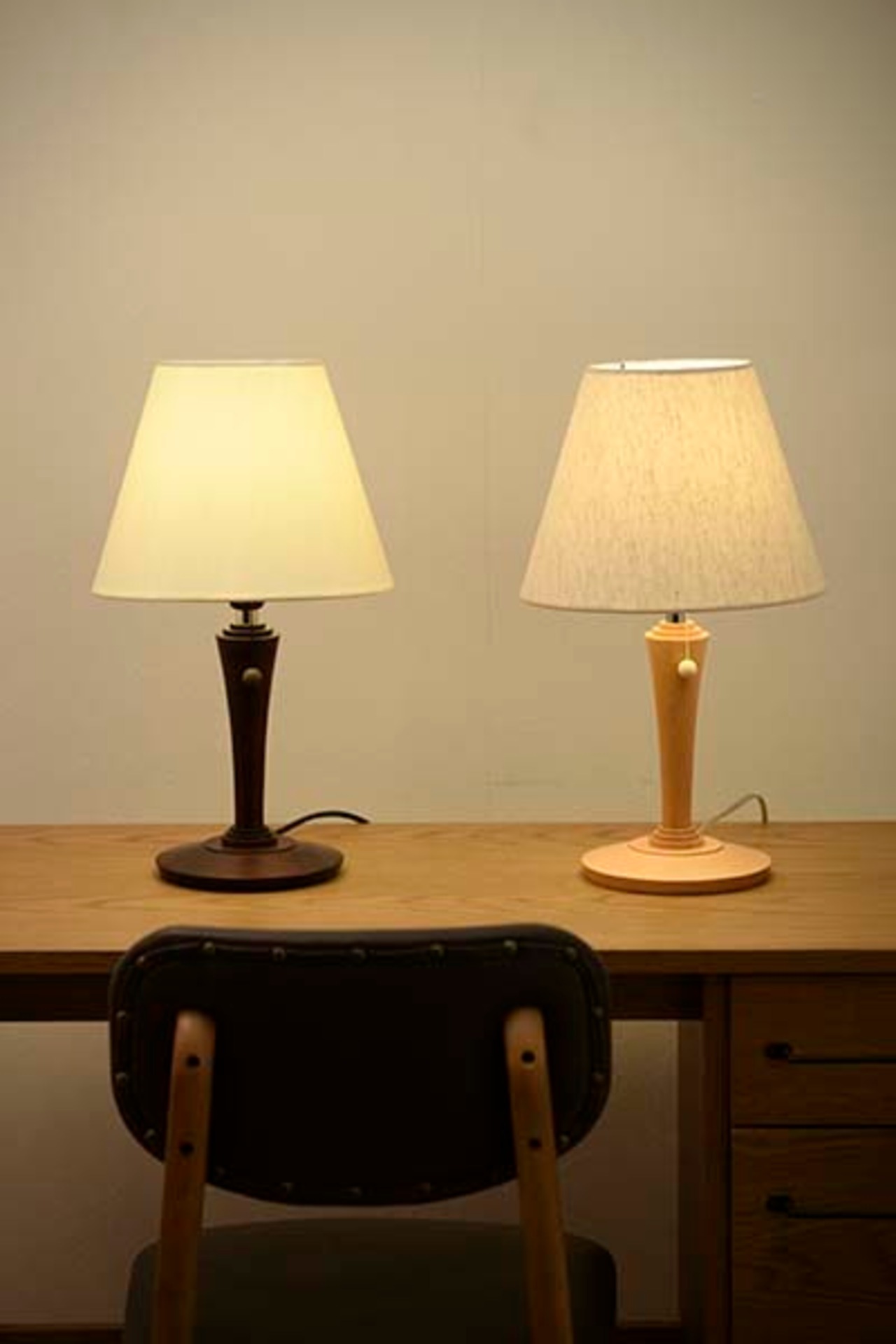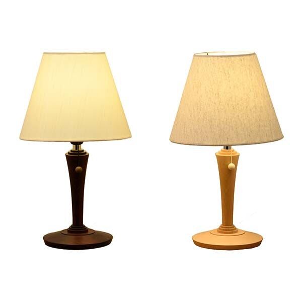 シンプルで落ち着いた雰囲気のテーブルライト。ウッドとファブリックを素材に、どこかぬくもりを感じる佇まい。ソファーサイドやベッドサイドなど夜の穏やかな時間と空間を演出してくれます。オーソドックスなプルスイッチは1灯→ナツメ→OFFと切り替え。昔ながらの切り替え動作が安らぎを与えます。カラーはブラウンとナチュラルの2色。それぞれにカラーに応じたシェードを採用。いずれもインテリアに合わせやすいデザイン、カラーリングになっています。