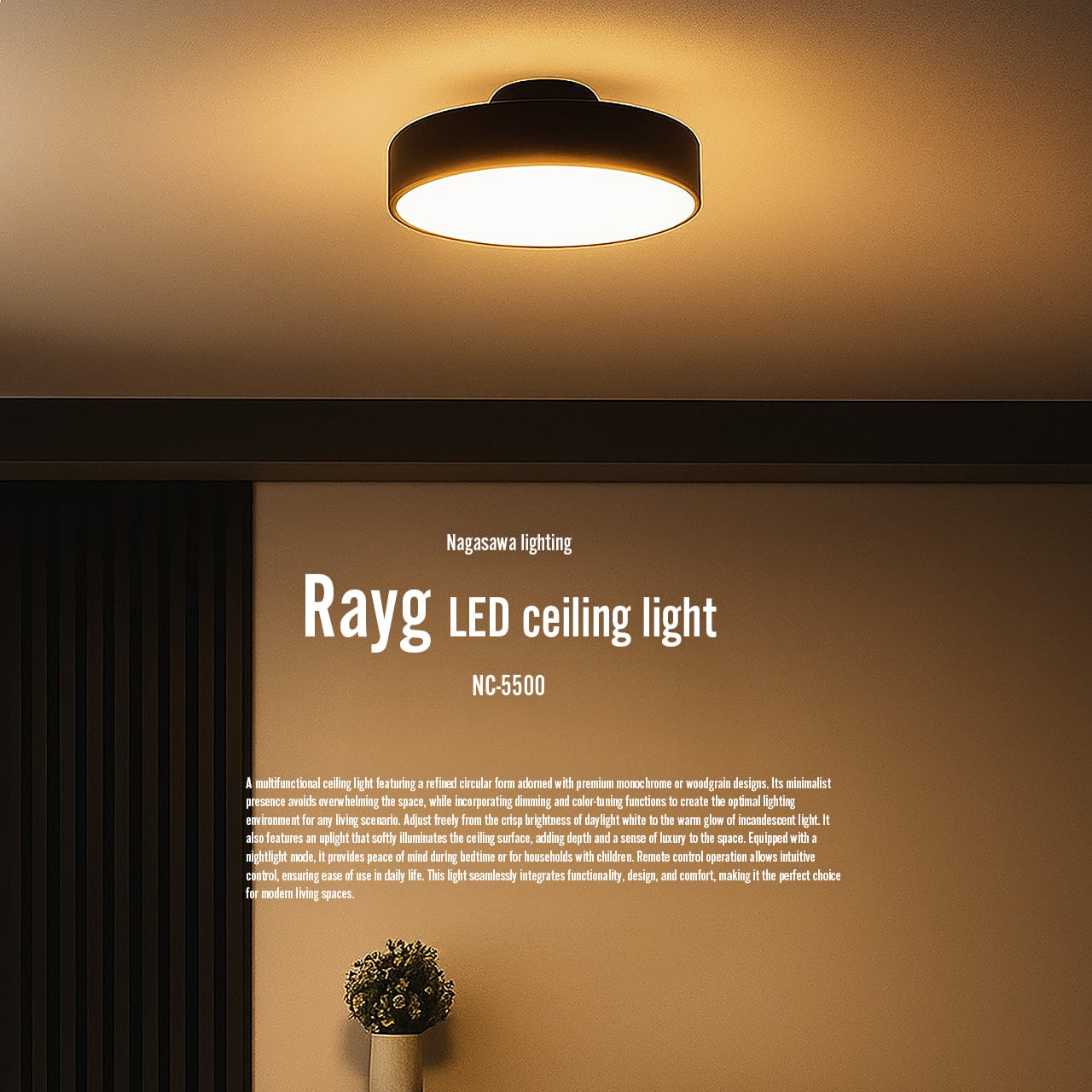 NAGASAWA Lighting 長澤ライティング Rayg レイグ LEDシーリングライト (LED内蔵) (6〜12畳向け/LED内蔵)NC-5500 / シーリングランプ 天井直付照明 調光 調色 リモコン 常夜灯 アッパーライト