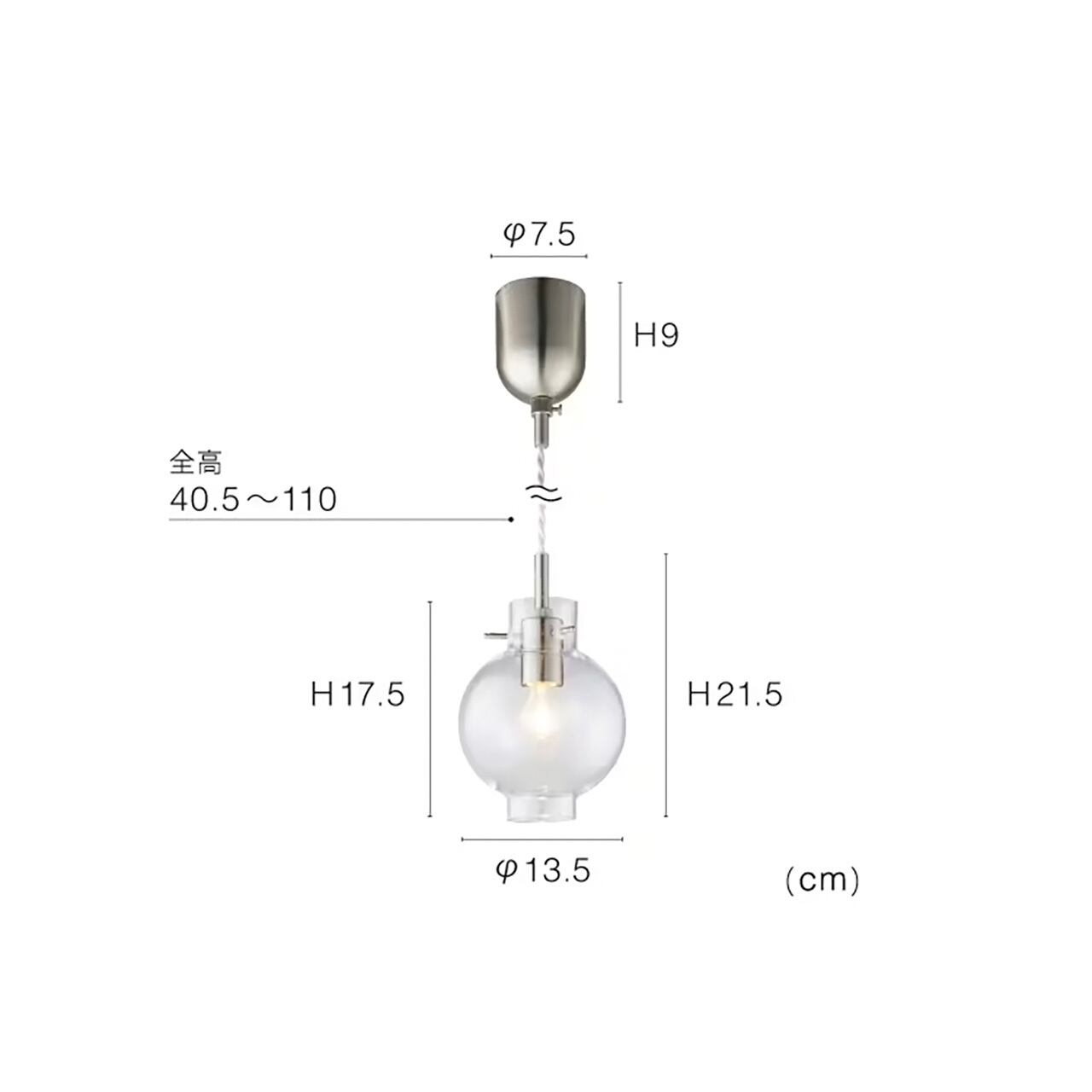 ■サイズ(約):全体: φ13.5×H21.5cm(ガラスセード: φ13.5×H17.5cm / シーリングカバー:φ7.5×H9cm / コード全高:40.5-110cm)