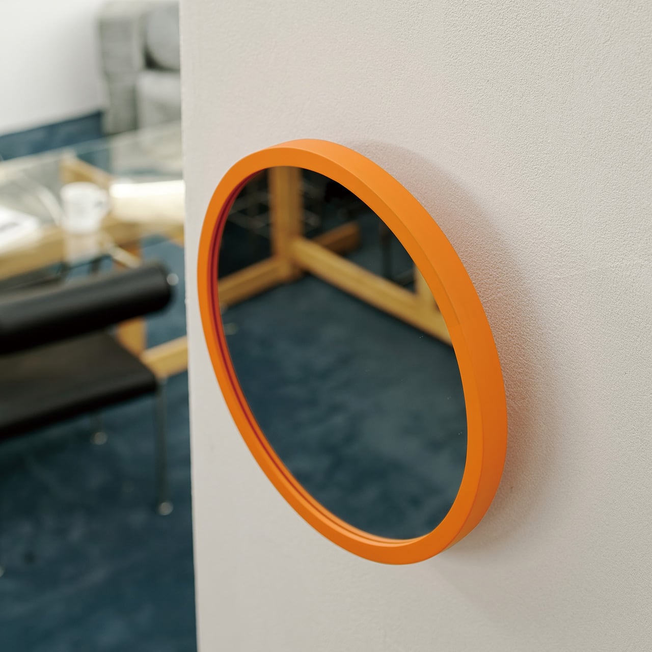 壁から浮き出たようなユニークさと、暮らしに溶け込む心地よさのバランスを追求したウォールミラー。心が上向く明るいカラーリングはいつもの場所にポップな抜け感を与えてくれます。直径28cmと小ぶりなサイズ感は玄関先のちょっとした身だしなみ用に、インテリアのアクセント用にと活躍の幅があり、複数設置でポップでジオメトリックな演出にもなります。シンプルながら要所にアクセントを効かせたロングライフデザインで、長く使えるミラーとしてお部屋に彩りを添えます。