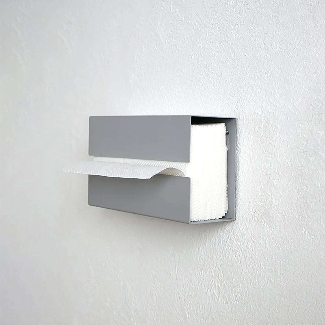 キッチンや洗面所で活躍するアイアン製のペーパータオルホルダー。壁面にビスで固定して使用する事も、置いて使用する事もできるので、壁に穴を開けたくない場所でもお使いいただけます。壁付の場合は横向き設置(縦向きの際は開口部を上に)、置いて使用する場合は縦向き・横向きどちらでも使用可能です。重量があるので安定してペーパーを取り出せます。表面の加工にこだわり、ざらりとした質感がシンプルかつ上質な雰囲気で、キッチンの雰囲気を壊しません。