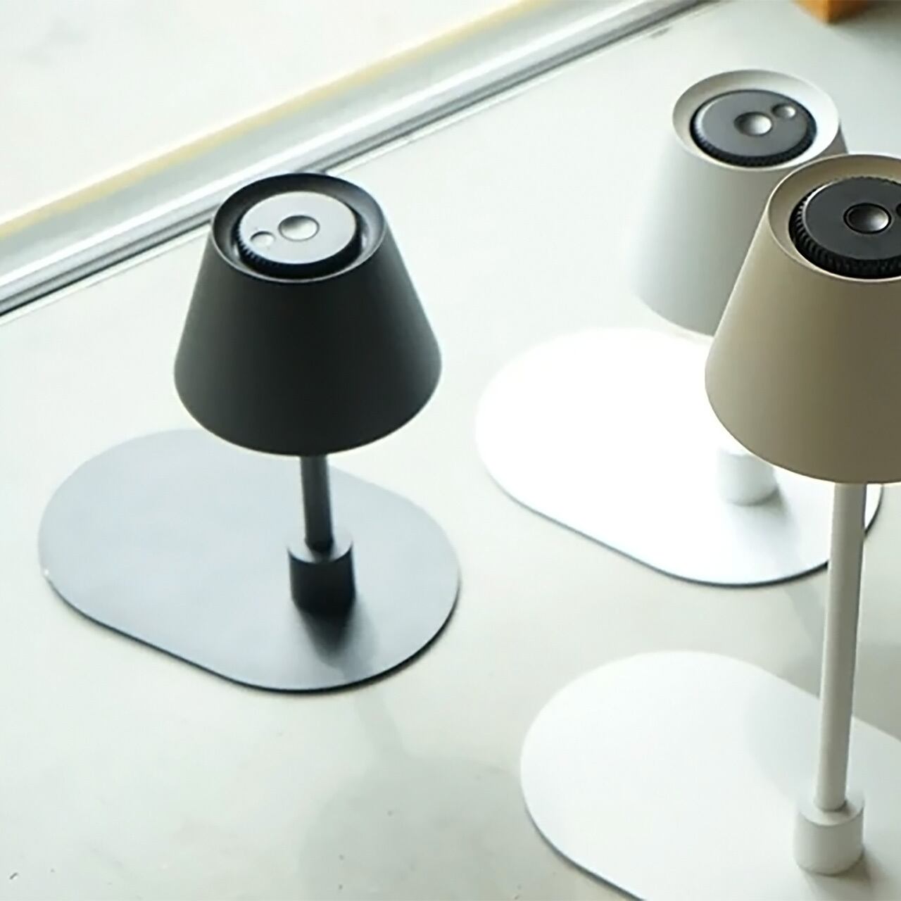 花のようなフォルムから「PLANTE(プランテ)」と名付けられた充電式LEDポータブルランプ。その愛らしいフォルムとざらりとした吹き付け塗装の質感が上質で、インテリアの雰囲気を損なわず、便利に使用できます。指先の操作で直感的に明るさの強弱が操作できたり、オレンジ色〜白色まで色味の調整が可能。光の広がる角度も調整できるため仕事/就寝前など様々なシチュエーションに対応可能です。また、充電式なのでコードを外せばコンセントを気にせず家中あちこちで使え、シェード・LEDライト(光源)・スタンドバー・プレート・充電ケーブルがそれぞれ別個のパーツとなっていて、外出にも持ち出せます。(防水仕様ではありません)