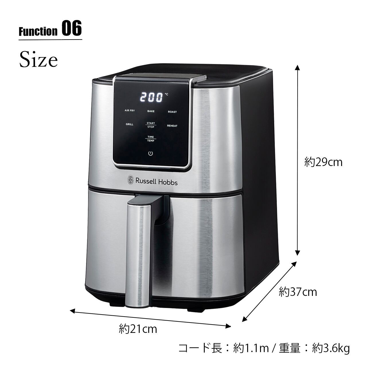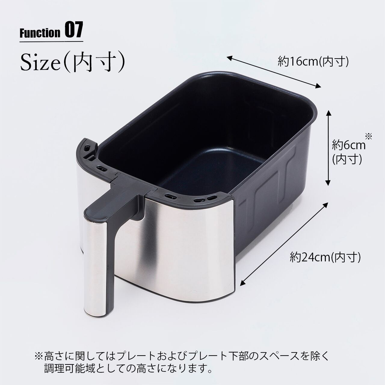 ■サイズ(約):W21.0×D37.0×H29.0cm (コードの長さ:約1.1m) / 内寸:バスケット庫内 W16×D24×H6cm ※※高さに関してはプレートおよびプレート下部のスペースを除く調理可能域としての高さになります。