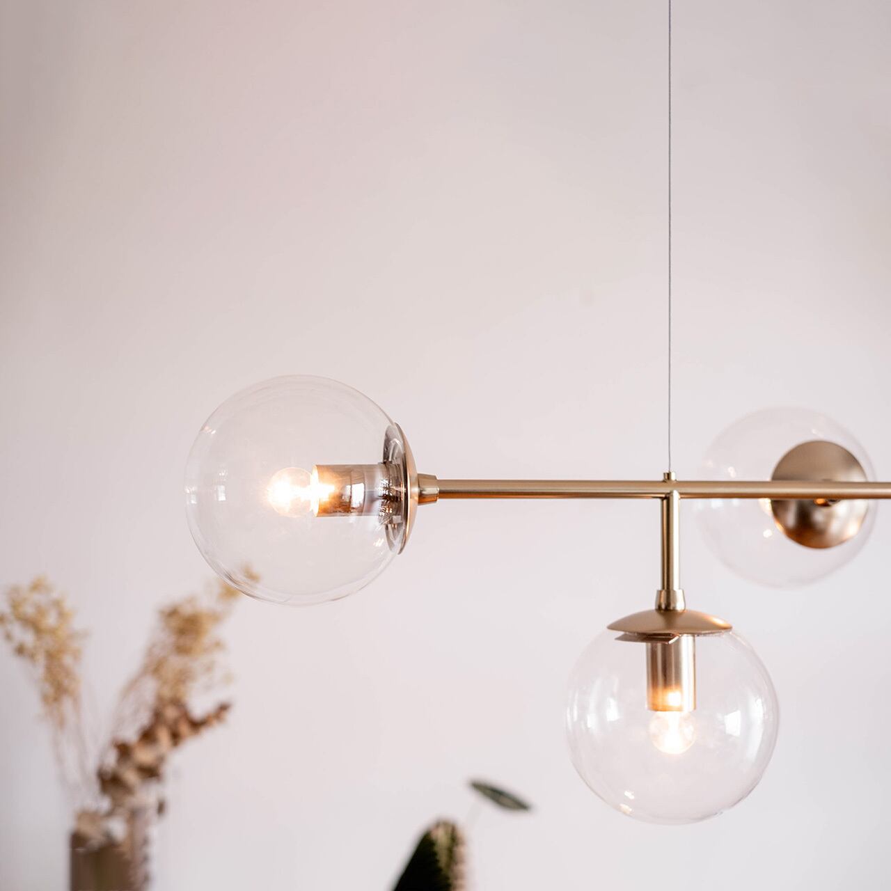 球体と直線のみで構成された、光そのものを、美しく吊るす、極めてミニマルなフォルムのペンダントライト。装飾を削ぎ落としたデザインだからこそ、素材の質感と光の美しさが際立ちます。ガラスグローブからは光が四方へやわらかく拡散し、部屋全体を明るく照らしながら、奥行きと陰影のある空間を演出。無機質な質感のスチールの本体と透明感のあるガラスの組み合わせは、モダン、北欧、インダストリアルなど幅広いインテリアと高い親和性を持ちます。6灯仕様の圧倒的な存在感で、灯りを消している時間さえも美しい佇まい。デザイン性と実用性を高い次元で融合させた一灯は、空間づくりに妥協したくない方にこそ選ばれる照明です。