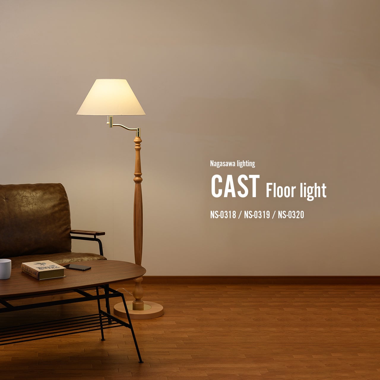 NAGASAWA Lighting 長澤ライティング CAST キャスト フロアライト (LED球付属) NS-0320 / フロアランプ スタンド照明 LED球対応 E26 60W相当×1灯 プルスイッチ 日本製 常夜灯 天然木 ファブリック
