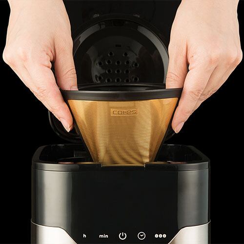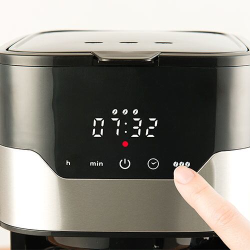焙煎された、豆そのものの個性をたっぷりと紡ぎ出す。 コーヒーへの深い敬意をスタイリッシュに体現した、コーヒーメーカーが生まれました。大容量なのに、スマートなデザイン。ゴールドフィルターをはじめ、最後の一杯まで美味しく飲める創意工夫の数々。産地から一杯のカップに至るまでの物語を、家族や仲間、大切な人たちと存分にお楽しみください。全ての操作をタッチパネルに集約。ステンレスシルバーによるスマートなフォルムを実現しました。幅、奥行き、高さとも程よいサイズ感で設計。大容量のコーヒーメーカーでありながら、ダイニングやオフィスにスタイリッシュに溶け込みます。約10分で抽出。大人数もおまかせの大容量です。プライベートなコーヒーブレイクから来客時のおもてなしまで、幅広いシーンで活躍。オフィスのリラックスタイムを支えるメインコーヒーメーカーに最適です。濃いめで楽しみたい方は、ひとめでわかるアロマ機能をどうぞ。コーヒー豆のアイコンランプの数で、お好みの味わいに調整できます。※点灯する豆の数が多いほど、ドリップされるコーヒーが濃くなります。最大容量 1.45L(抽出量10カップ)