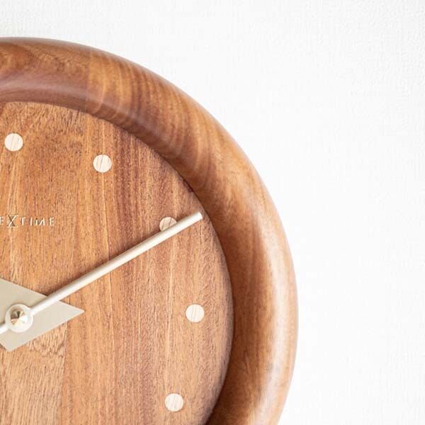 自然の美しさとモダンなデザインが融合した「DOWEL CIRCLE」は、シンプルながらも存在感のある ラウンドウッドデザインの時計です。木の質感を最大限に活かした滑らかな曲線と、木のダボで作られたドットインデックスが特徴。厚みのあるボディは存在感も抜群。 ゴールドの針が洗練されたアクセントを加え、どんな空間にも高級感を演出します。