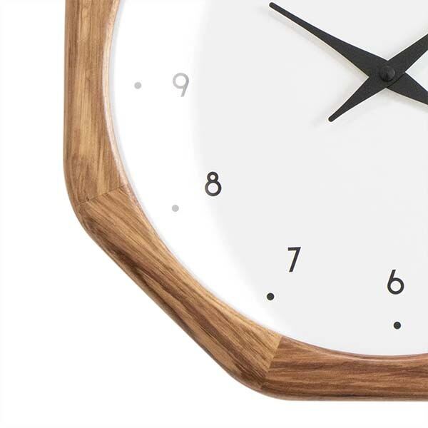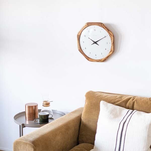 伝統とモダンデザインが融合した八角形のゼブラウッドフレームが特徴の時計です。独自の八角形デザインが空間に個性を与えながら、ゼブラウッドの美しい木目が自然な温かみを加えます。ホワイトの文字盤には、シンプルなアラビア数字とブラックの針が配置され、視認性に優れています。洗練されたデザインは、リビングやダイニング、オフィスなど、どんな空間にも調和します。