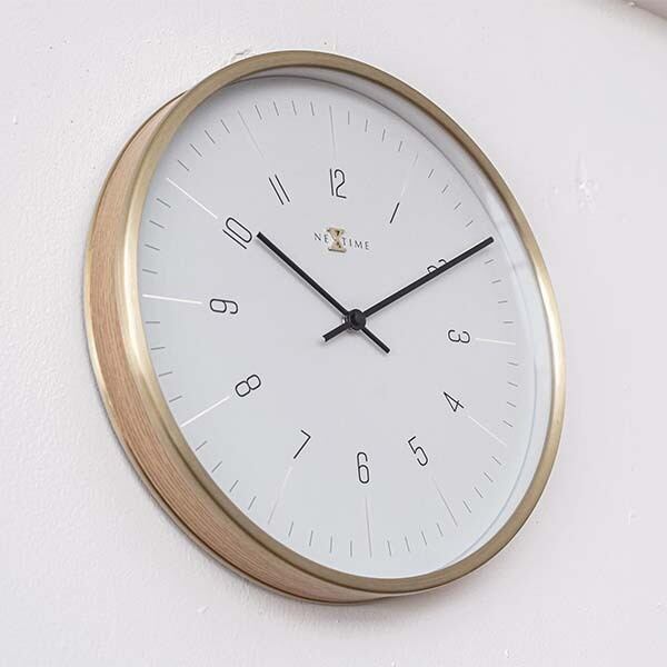 ゴールドのアルミフレームに巻かれたオークベニアがコントラストの美を引き出します。それらの組み合わせが空間に洗練された温もりをもたらします。 文字盤やロゴにもゴールドの色彩が散りばめており、微細なディテールに宿った金色が空間に独自の輝きをもたらします。