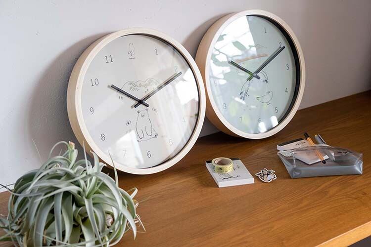 森の動物たちの暮らしのひとコマを切り取ったような壁掛時計。イラストレーター「落合 恵(おちあい めぐみ)」さんが描く森の動物たちの 暮らしのひとコマを切り取ったような壁掛け時計です。ブランド名の『シルヴァン(SYLBAN)』は「森に住む人」「森の精」という意味。ナチュラルな 木のボディで心なごむ商品に仕上がりました。白を基調としたお部屋のインテリアとしてもおすすめです♪森の動物たちの暮らしのひとコマを切り取ったような優しく穏やかなタッチのイラストはどこかホッコリ、和やかで穏やかな雰囲気を出してくれています。時間に追われる、忙しい現代の生活の中に、時間を確認することで少し心にゆとりが生まれるかもしれません。 ■ムーブメント 日本メーカー製スイープムーブメント ■電源 単三乾電池×1(別売)