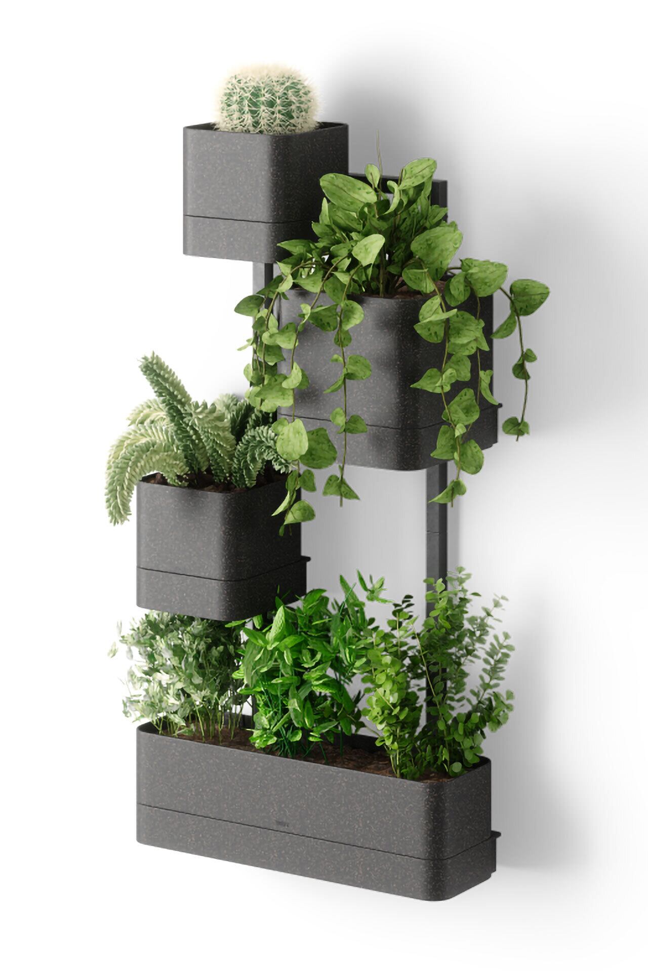 屋内外問わずにディスプレイできるプランター。大きさの異なる4つのポットが付属し、空間に合わせて自由にレイアウト可能です。排水トレーが付属しているので、植物を健康に保つことができます。