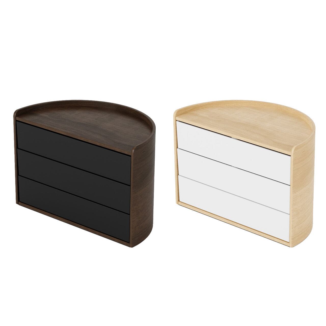 360度回転する3つの大きな引き出しが特徴のムーナは、シンプルでありながら美しい木目との組み合わせがモダンでお部屋をスタイリッシュに彩ります。天板には、デイリーに使うアクセサリーや小物置きとして最適です。