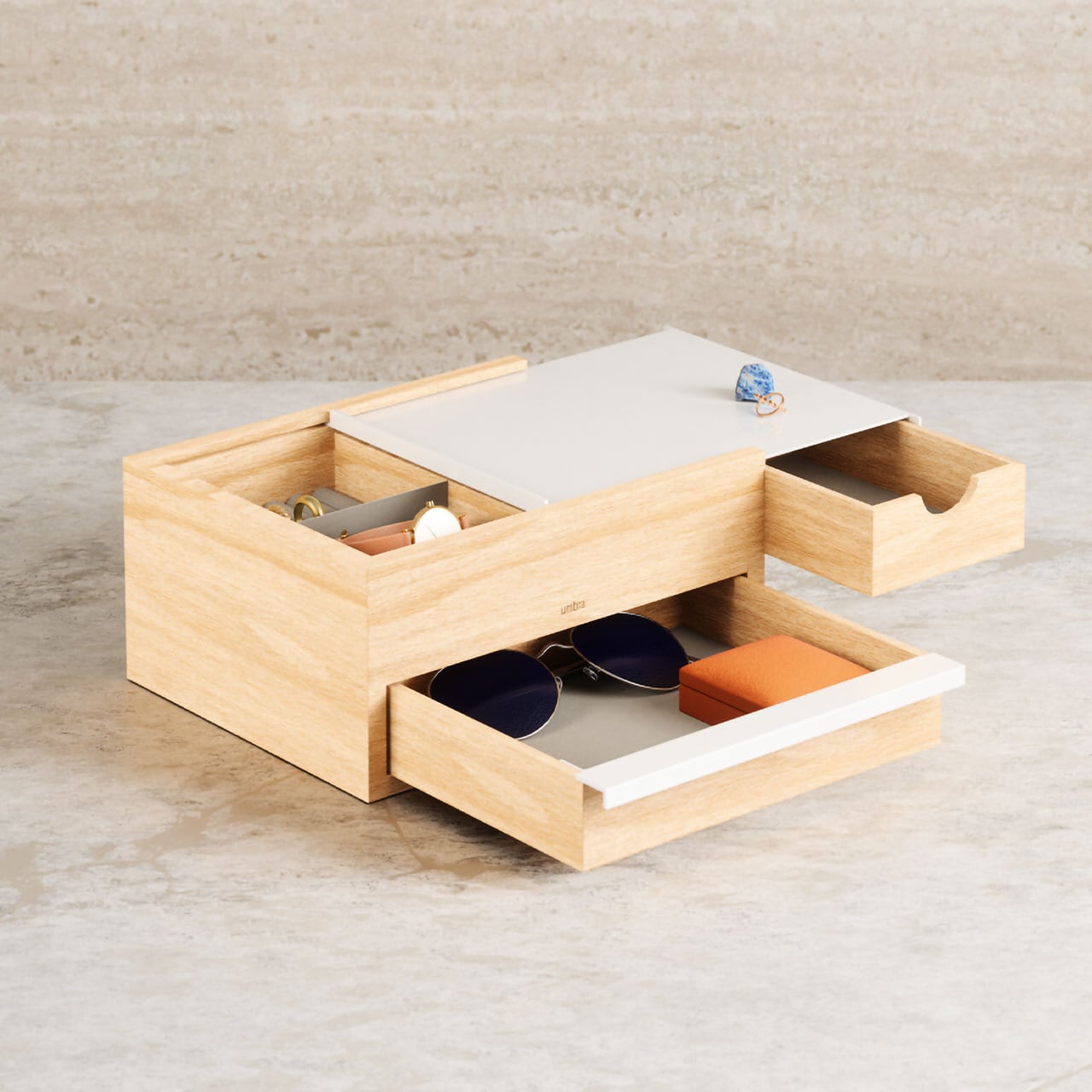 Umbra アンブラ STOWIT jewelry box ストウイット ジュエリーボックス 収納 アクセサリーボックス リング トレイ ケース コスメ 小物入れ 木目