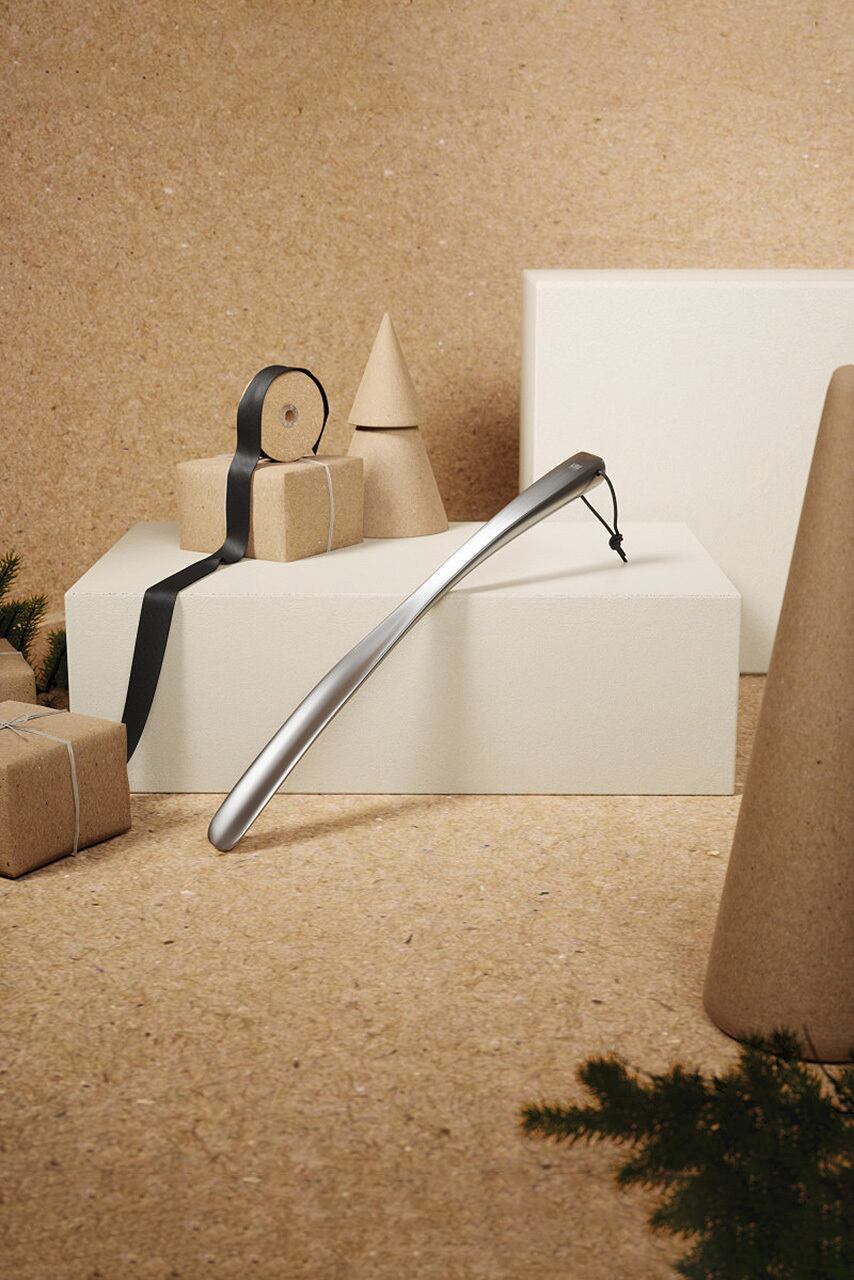 クラシックなシューホーンを現代風にアレンジした、スタイリッシュでエレガントな靴べら。持ち手が長めに設計されているので、屈まずとも履きやすくなっています。使い勝手を追求した、滑らかで丸みを帯びたエッジ。クロームメッキでマットな質感に仕上げたアルミ製で堅牢なつくり。ロープループを使用して引っ掛け収納もでき、スリムな形状で場所を取りません。履きやすさは靴をいたわることにもなります。日常のストレスの軽減と靴の保護、スタイリッシュなデザインでエントランスを快適でエレガントな空間に誘います。
