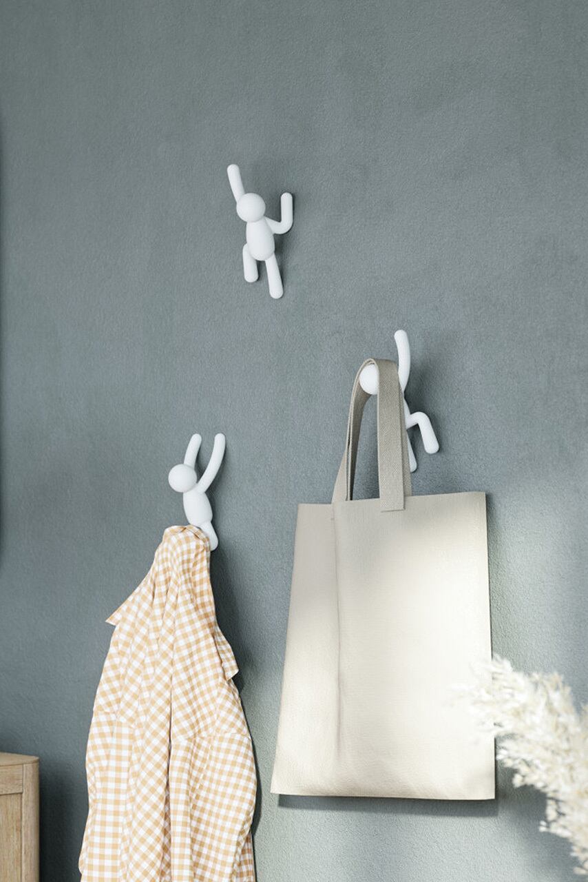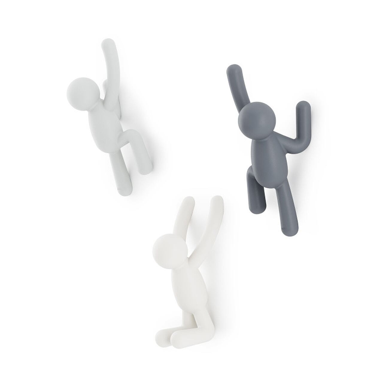 Umbraの人気キャラクター『バディ』がさまざまなポジションでウォールクライミングをするユニークなウォールフックです。バディの腕、足、頭は衣類、アクセサリーなどを掛けることができます。使用場所によって様々ですが、リュックサック、傘、タオルなどを掛けるのもおすすめです。フックを使用していないとき、楽しいウォールデコレーションになります。