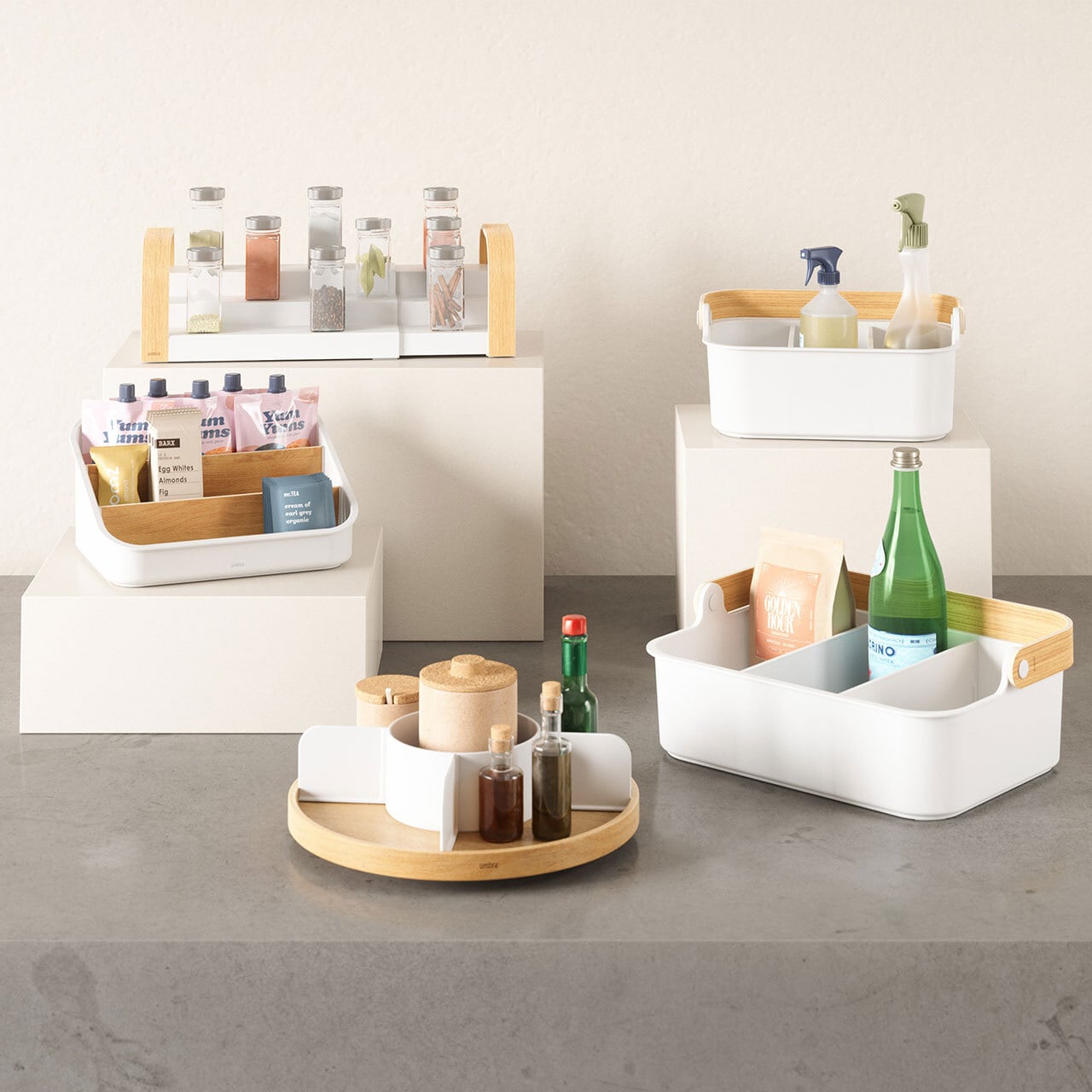 Umbra アンブラ BELLWOOD 3-Tier Spice Shelf ベルウッド スパイスラック 3段 調味料収納 収納棚 キッチン 食器棚 取っ手付き 木製