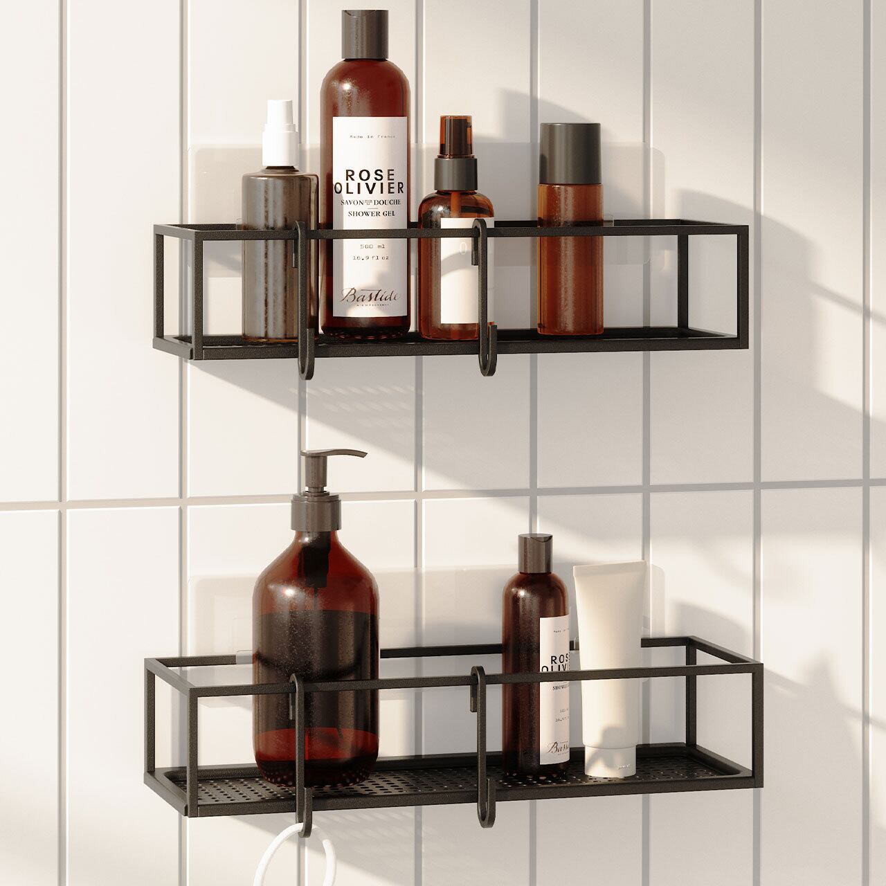Umbra アンブラ キュービコ シャワービン 2pcsセット Cubiko Adhesive Shower Bins バス収納 お風呂 キッチン収納 フィルムフック タイル面 ガラス面 ラック 浮かせて収納