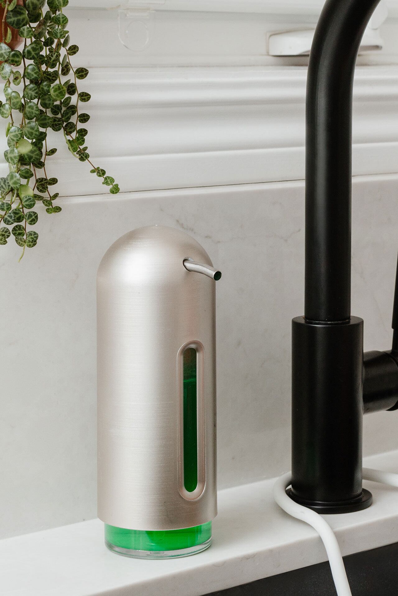 ■プッシュする部分の表面積が広く、マットな質感なので滑りにくく使いやすい設計。キッチン洗剤、ハンドソープだけでなくアルコールディスペンサーとしてなど多用途にお使いいただけます。
