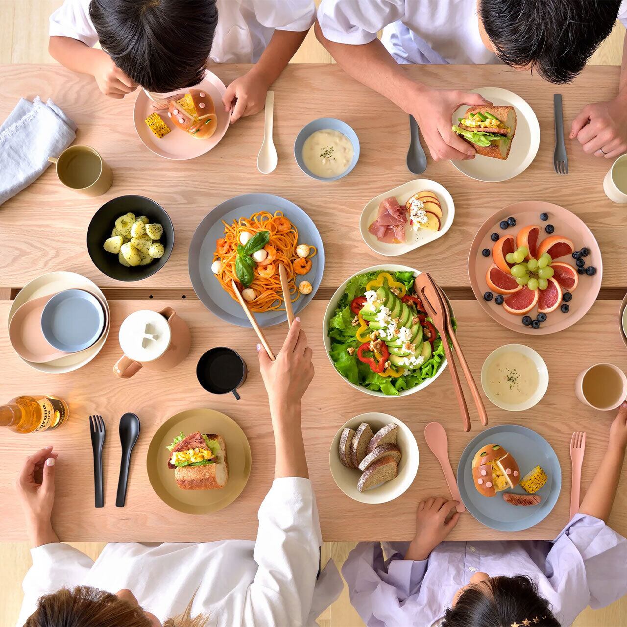 ■50%が竹でできているバンブーメラミン素材「usumono」シリーズ。薄くて軽く、アウトドアでも割れにくく、マットな質感と豊富なサイズバリエーションが魅力です。