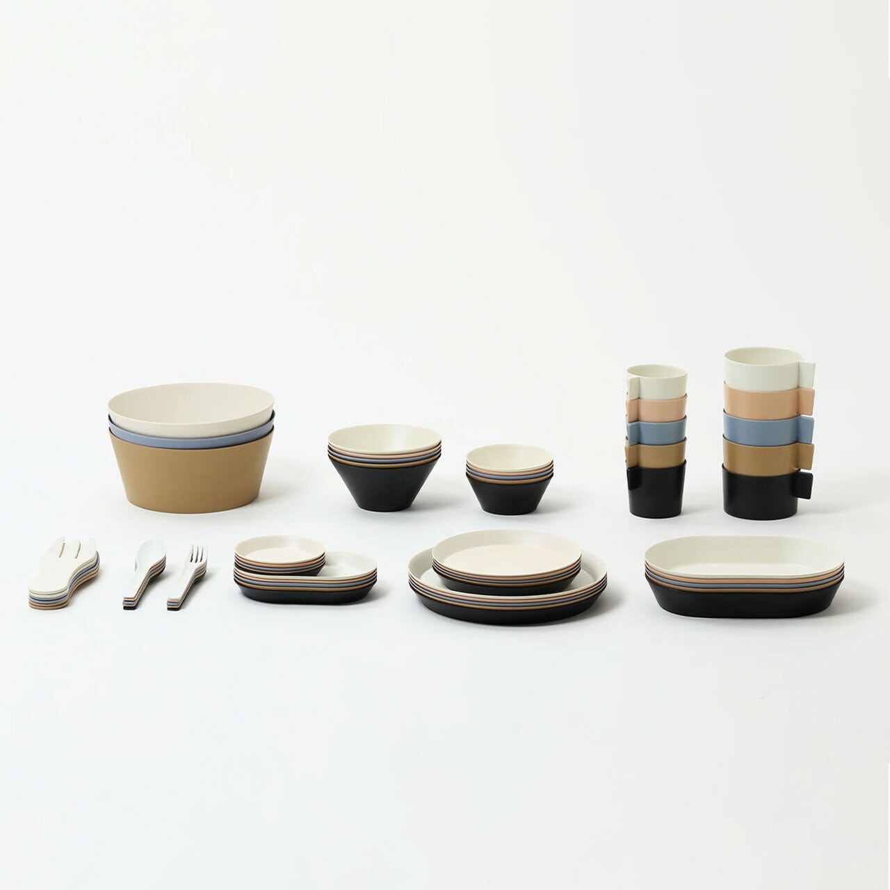 ■50%が竹でできているバンブーメラミン素材「usumono」シリーズ。薄くて軽く、アウトドアでも割れにくく、マットな質感と豊富なサイズバリエーションが魅力です。