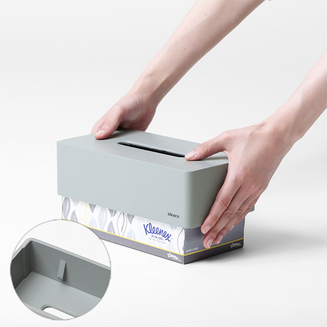 シンプルを極めた使い易さのスタンダード!”箱ティッシュ”専用ティッシュケース。ティッシュ箱の上から被せるだけで、内側に施した突起がティッシュ箱を挟み込んで固定するため、ケースを持ち上げても落ちません。また、ケースには適度な重みがあるため、箱が浮き上がらずスムーズにティッシュを引き出せます。陶器のようなしっとりしたマットな質感がラグジュアリーなティッシュケースです。従来品bar grandeより、対応サイズはそのまま、ケース本体はコンパクトになりました。ゴミ箱HOMMEと同色展開なので、カラーを合わせてお使いいただけます◎ 幅24.5×奥行き12×高さ6cmまでのティッシュボックスにお使いいただけます。