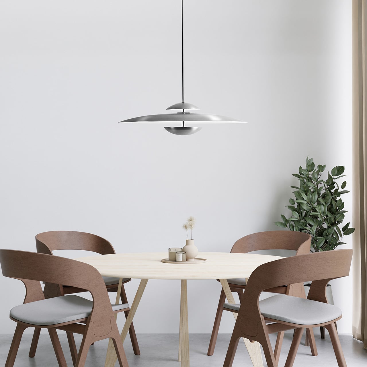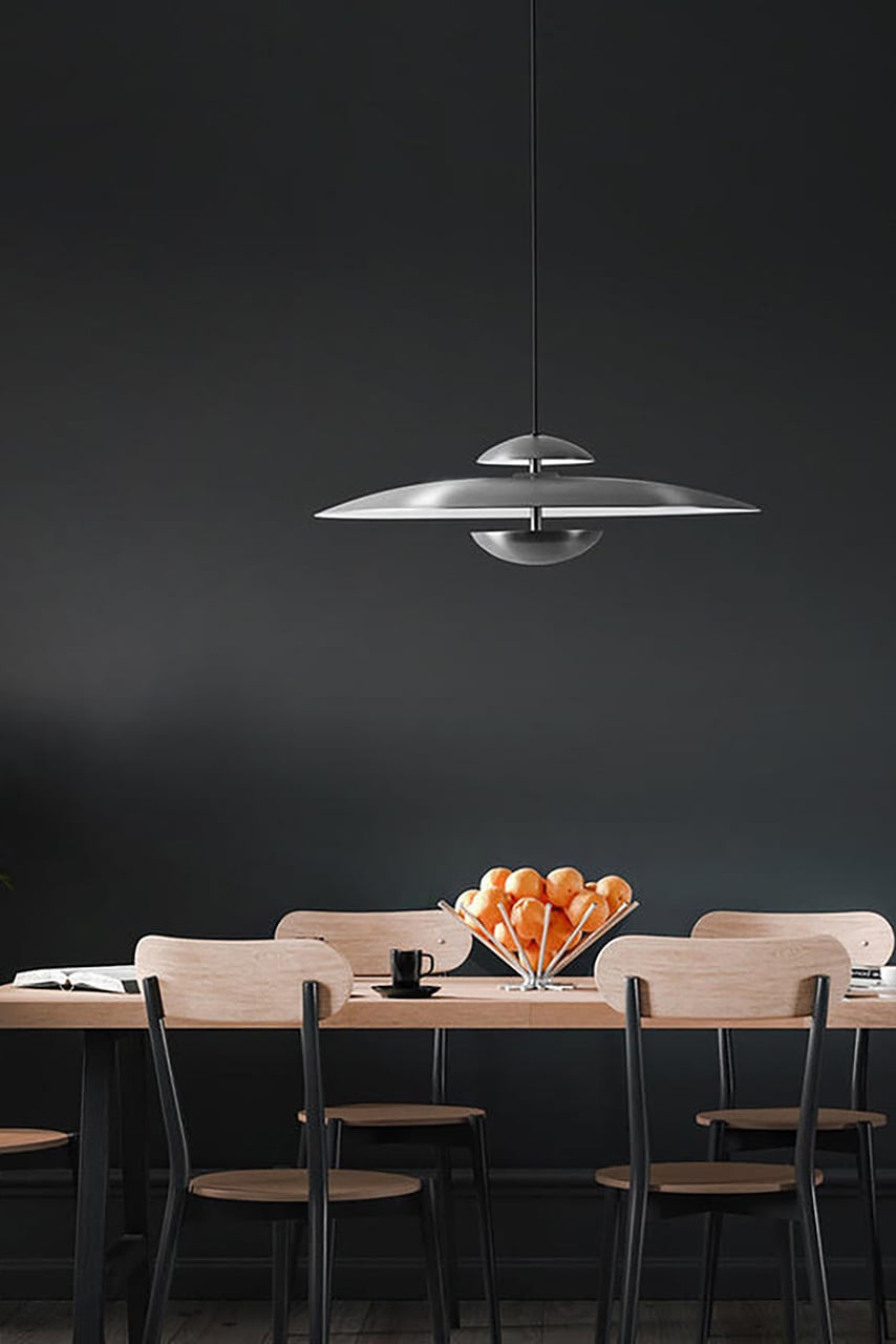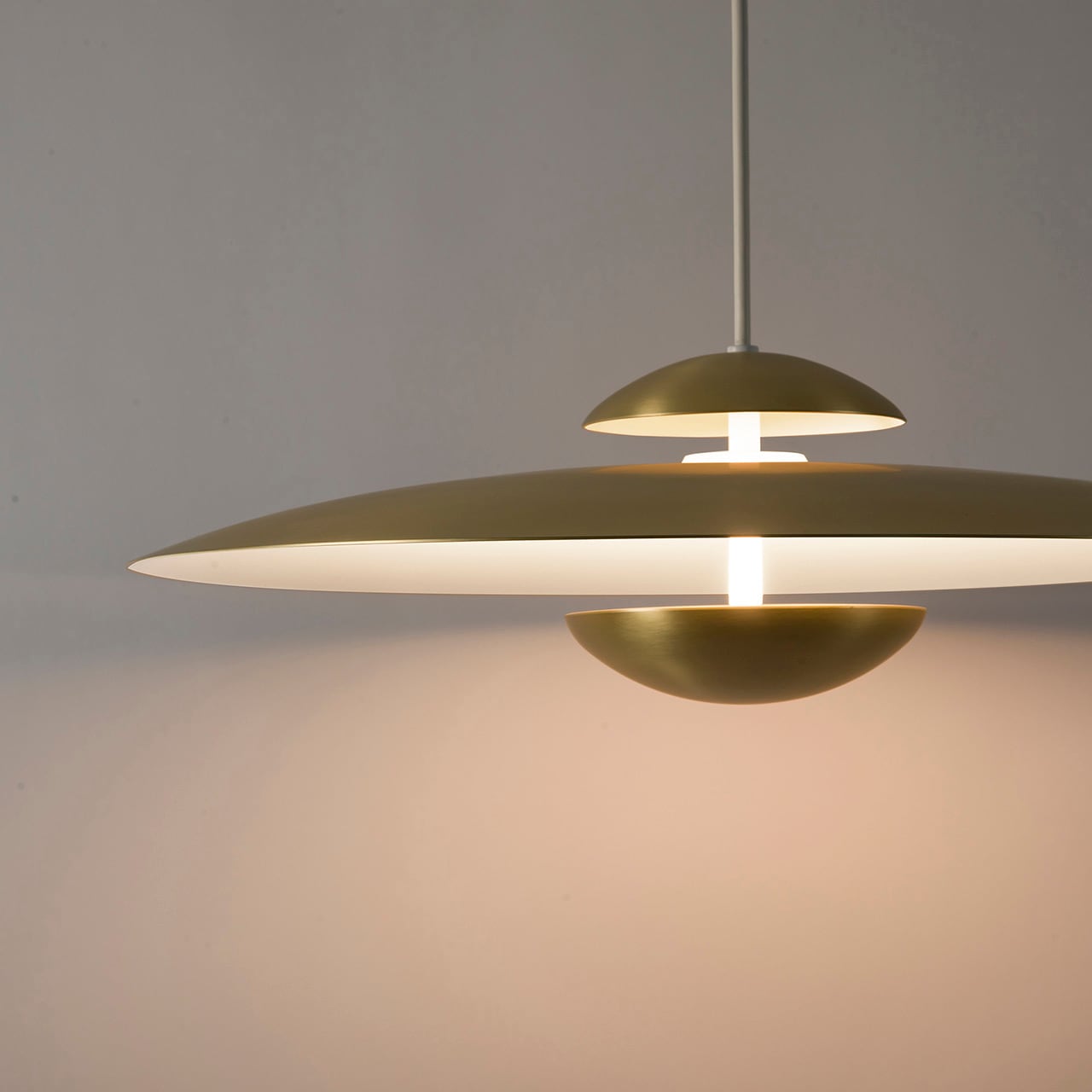 大きな空にぷかぷかと浮かぶ雲は、刻々とカタチを変えながら、空に絵を描いているようでもあります。そんな雲のカタチからインスピレーションを得て、3つのパーツで構成されたシェードを描きました。LEDモジュールを光源とし、光源を器具下部に仕込むことでアッパーライトの効果があり、大きなシェードに反射してやさしい光が広がります。また光源が直接見えないので、まぶしさもありません。忠実に自然光と同じスペクトルを再現した高品位なLEDを採用し、CRI(演色評価数)は脅威の97を記録。自然光(100)とほぼ同等の性能を有しています。LED光源としては業界初のダイヤモンドグレードに登録されたLEDで、その効果は目の快適さ、近視改善、学習力の向上、睡眠の質改善など研究所の実験で証明されています。