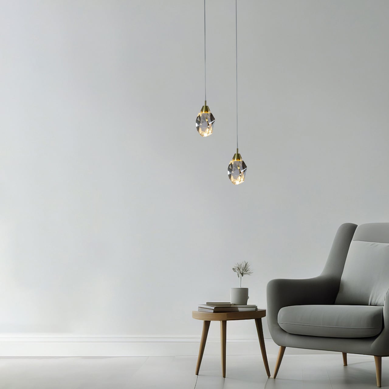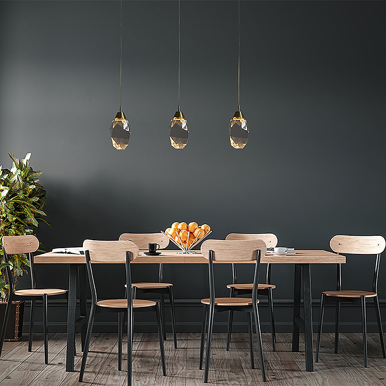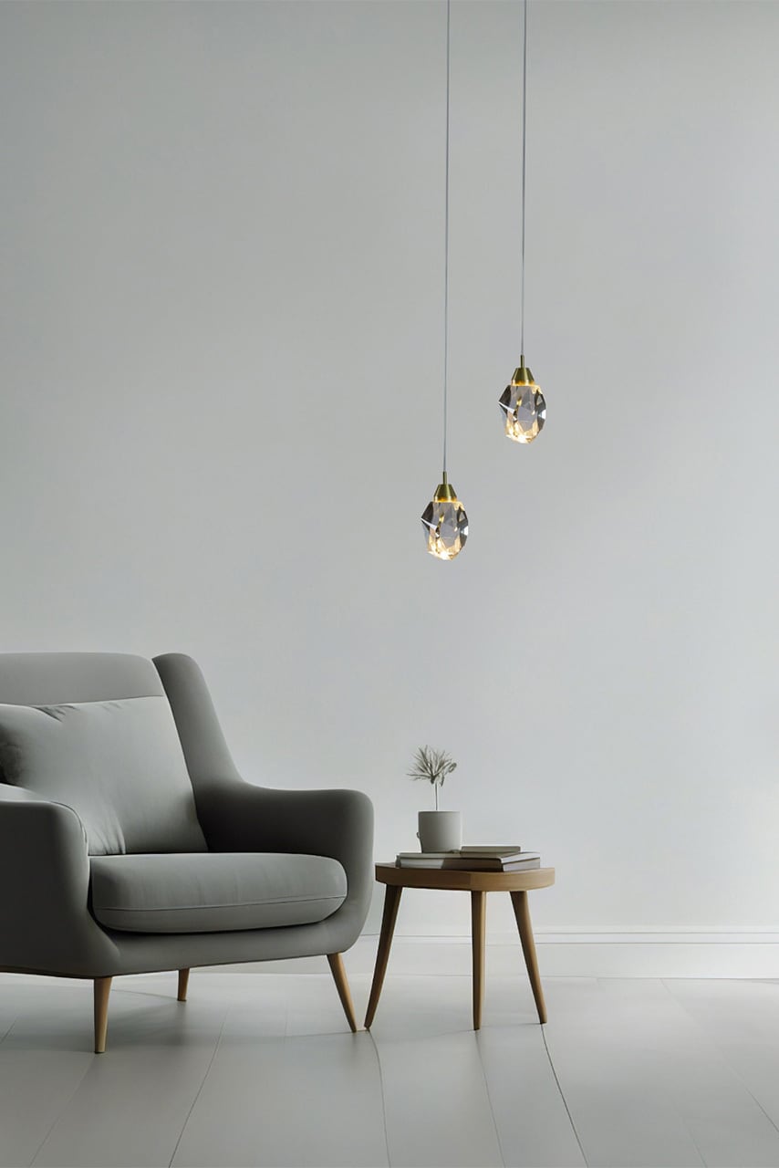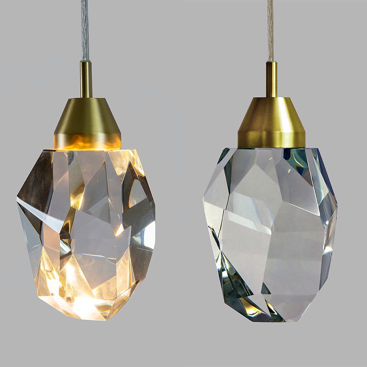 氷の美しさは、透明感と光の屈折、自然が生み出す幾何学模様、滑らかな表面の輝きにあります。時間とともに形を変え、溶ける過程でさらに独特の表情を見せるのも魅力のひとつ。静寂で清涼感のある氷は、見る人に心地よさを与え、自然が創るアートとして私たちを惹きつけます。 Drabe pendant light では氷の美しさをガラスで表現し、LED 光源で氷のようなガラスをライトアップしました。 それは氷が太陽光を乱反射させるかのように、光が広がります。単灯での使用はもちろん、多灯吊りにすることで、さらにダイナミックで迫力ある表情を演出。まるで氷の世界に迷い込んだかのような幻想的な空間を作り上げます。